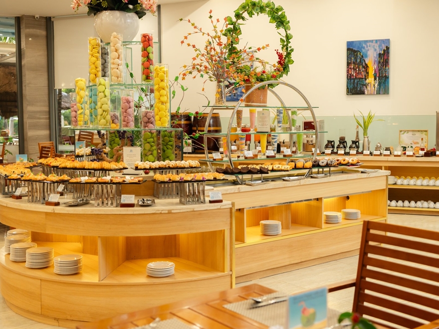 1/ Đối với dịch vụ Gói AI, Quý khách sẽ được trải nghiệm tất cả các dịch vụ đã được liệt kê phía trên cùng với 3 bữa ăn buffet (sáng, trưa, tối) & 2 bữa ăn nhẹ với đồ uống không giới hạn (trà, cà phê, các loại đồ uống không cồn).
