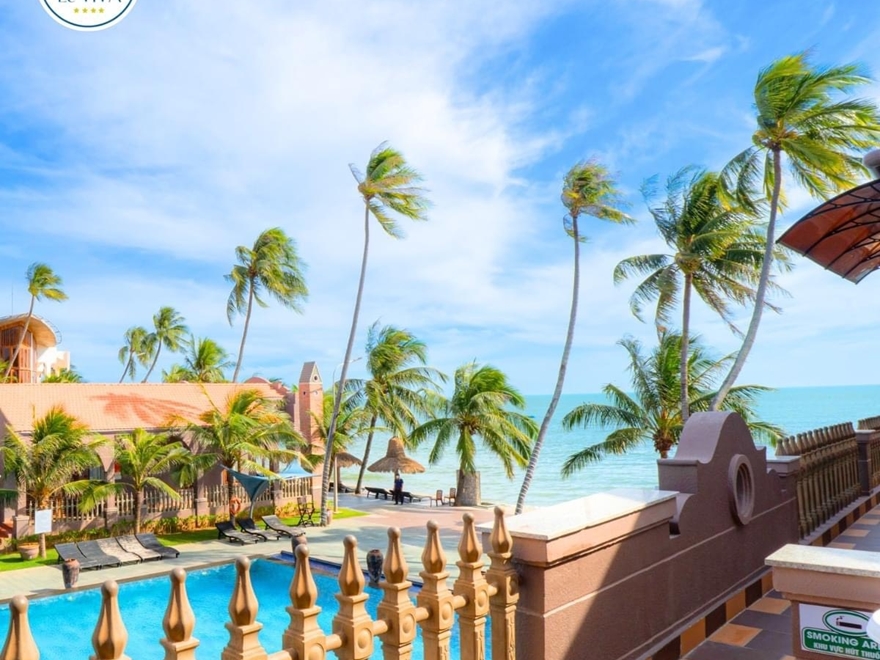 - Toạ lạc ngay trung tâm khu du lịch Mũi Né, là một resort được đánh giá tiêu chuẩn 4 sao với bãi biển riêng biệt.