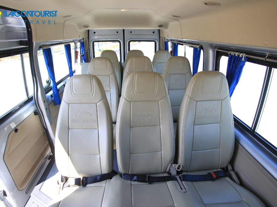 - Xe có ghế ngồi thoải mái, rộng rãi, điều hòa mát, phù hợp cả nhóm nhỏ (xe 7 chỗ) lẫn đoàn đông (xe 16 chỗ).