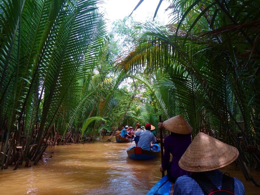 con rạch nhỏ với hàng dừa nước xanh mát hai bên bờ, vô cùng yên bình. Quý khách