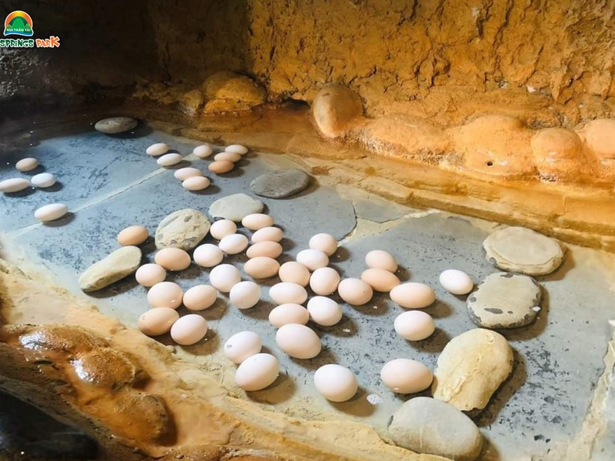 - Trứng trường thọ: Tương truyền, trứng gà là một vật bổ dưỡng với lòng đỏ và lòng trắng bao bọc lấy nhau như âm và dương (đỏ dương, trắng âm) và kết hợp với nguồn khoáng nóng từ Long Huyệt sẽ đem lại một phương thức chữa bệnh vô cùng quý giá. Hương vị đặc biệt này chỉ có duy nhất tại khu du lịch Núi Thần Tài