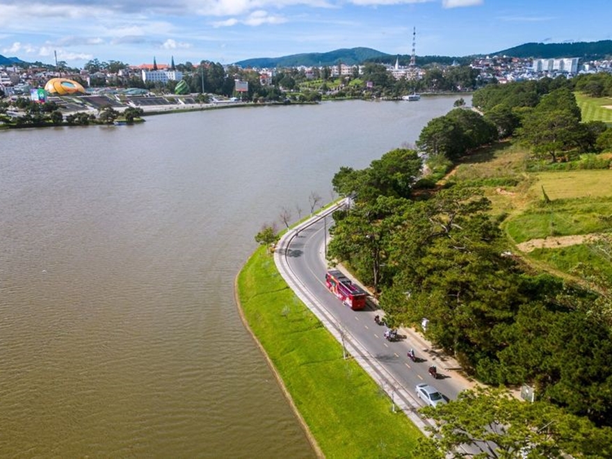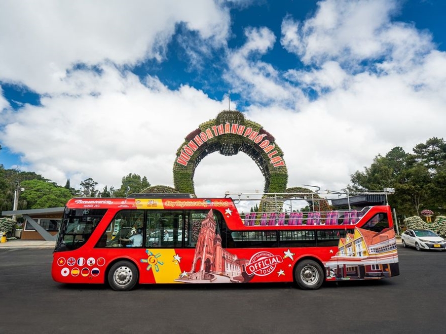 8h _ Vé ngắm cảnh bằng xe buýt 2 tầng tại thành phố Đà Lạt có thể lên xuống các