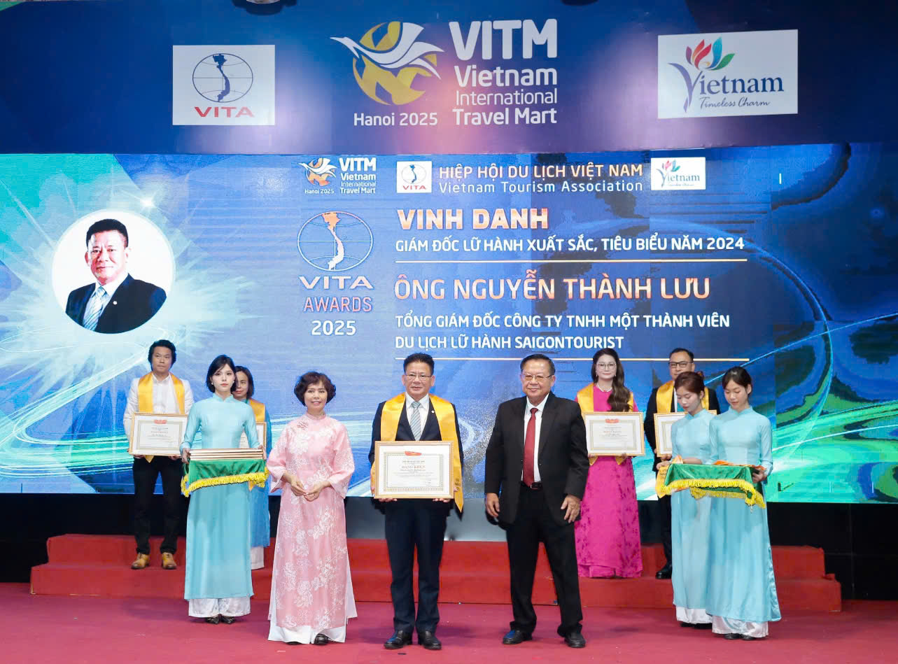 Chiều 10/4/2025, tại Hà Nội, trong khuôn khổ Hội chợ Du lịch Quốc tế Việt Nam - VITM, Công ty Dịch vụ Lữ hành Saigontourist vinh dự đón nhận 6 hạng mục giải thưởng do Hiệp hội Du lịch Việt Nam trao tặng: