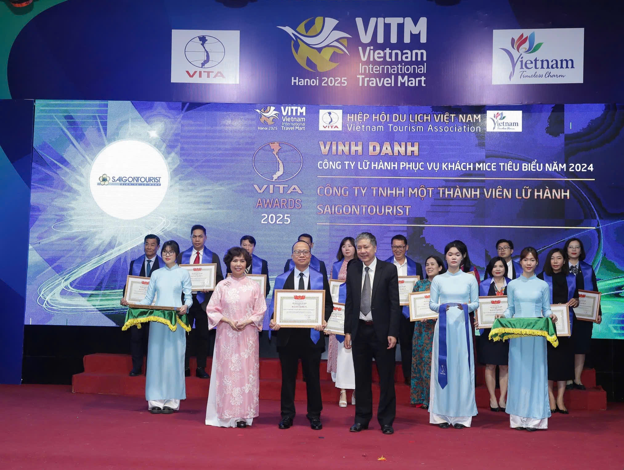 Lữ hành Saigontourist đoạt 6 giải thưởng tiêu biểu của Hiệp hội Du lịch Việt Nam tại VITM Hà Nội (10/4/2025), trong đó ông Nguyễn Thành Lưu nhận giải “Lãnh đạo xuất sắc 2024.”
