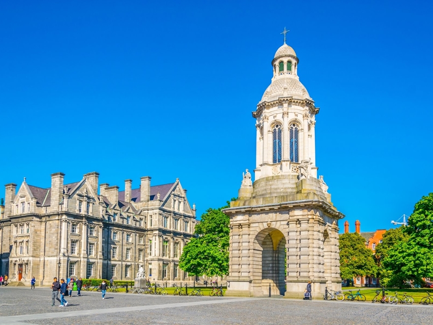 - Chụp hình bên ngoài Thư viện Trinity College Library tráng lệ với kiến trúc cổ kính nổi tiếng.