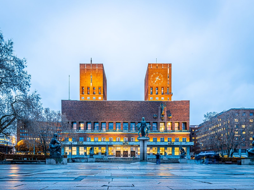 - Dạo chơi khu trung tâm, chụp hình bên ngoài Tòa thị chính Oslo City Hall.