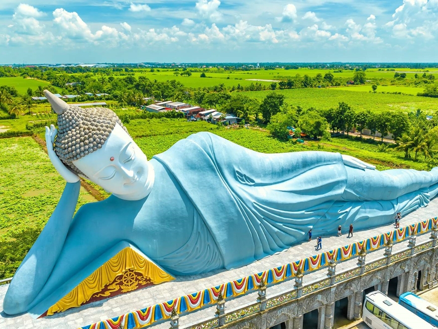 - Chùa Som Rong ngôi chùa Khmer nổi tiếng tại Sóc Trăng với kiến trúc độc đáo. Trong khuôn viên chùa có tượng Phật Thích Ca nhập Niết Bàn ngoài trời dài 63m, cao 22,5m, đặt trên bệ cao khoảng 28m so với mặt đất.