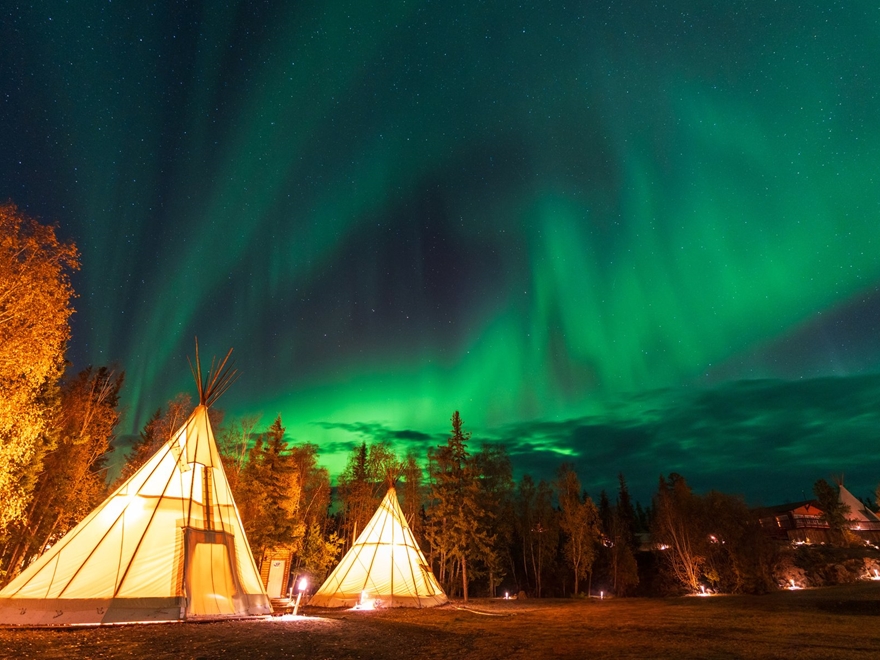 - Buổi tối, đoàn sẽ được đưa đến những túp lều Teepee với thức ăn nhẹ và đồ uống đã được chuẩn bị sẵn để chờ cực quang xuất hiện.