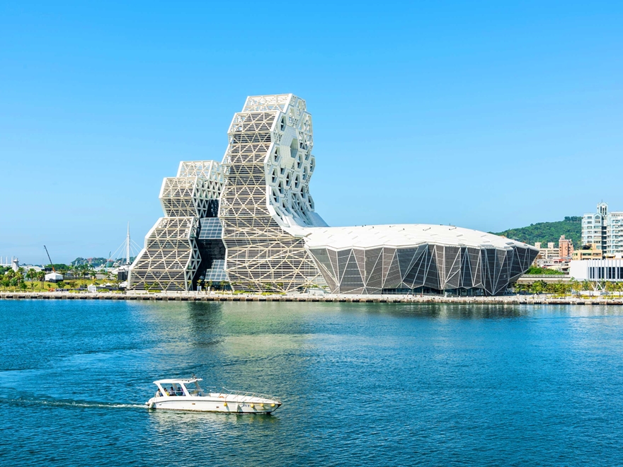 - Chụp hình Trung tâm Âm nhạc Cao Hùng, công trình biểu tượng mang đẳng cấp quốc tế, nơi diễn ra các lễ hội âm nhạc đương đại lớn nhất miền Nam.