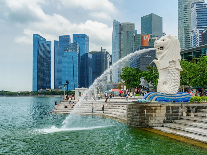 viên Merlion gần bờ sông, là một biểu tượng của đất nước Singapore (khánh thành