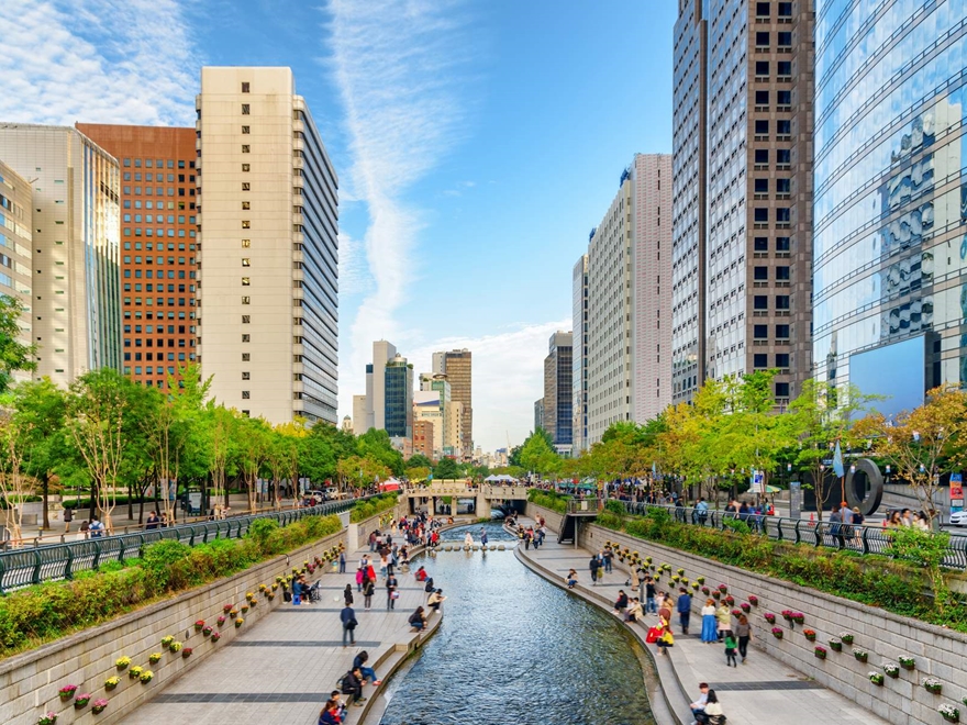 - Dạo bước dọc Suối Cheonggyecheon, dòng suối nhân tạo giữa lòng thủ đô – điểm nhấn của nghệ thuật đô thị hiện đại.