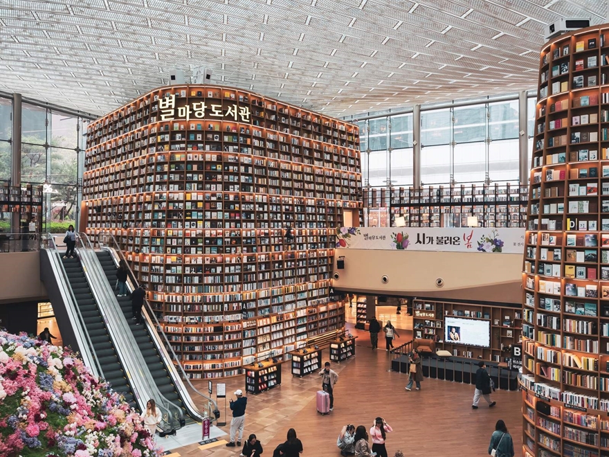 - Tham quan Starfield Library Suwon, thư viện nổi tiếng trong trung tâm thương mại Starfield Suwon Mall, check-in không gian ấn tượng với các kệ sách cao đến 22m, thưởng thức một phần nước uống tại Paletscent Coffee & Bakery.