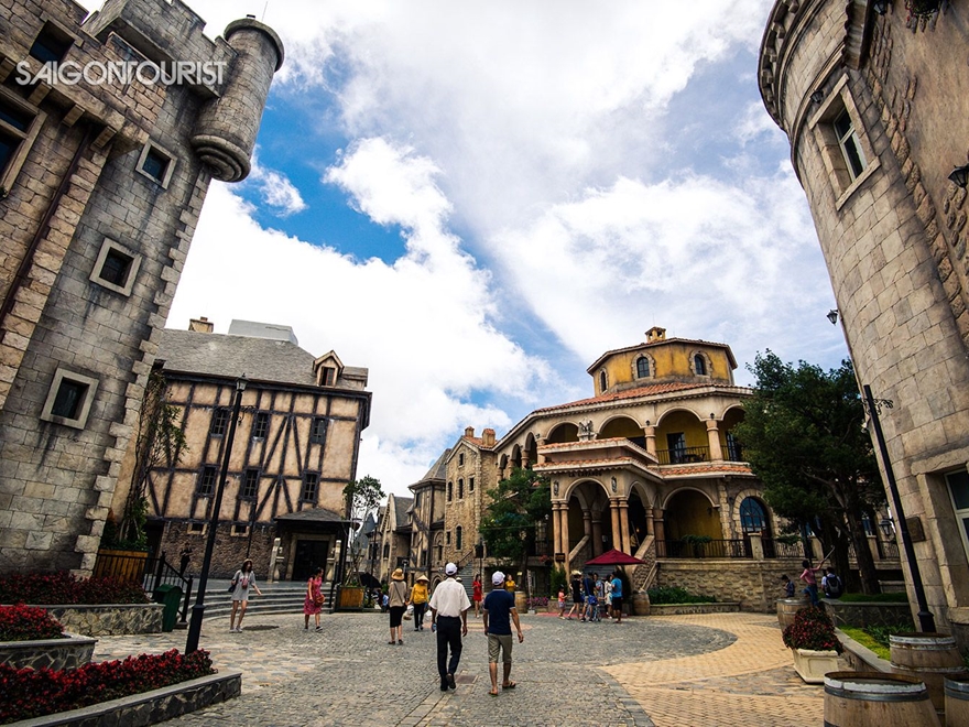 khám phá Fantasy Park - khu vui chơi giải trí trong nhà. Dạo bộ giữa Khu làng Pháp một không gian kiến trúc tái hiện sinh động nước Pháp