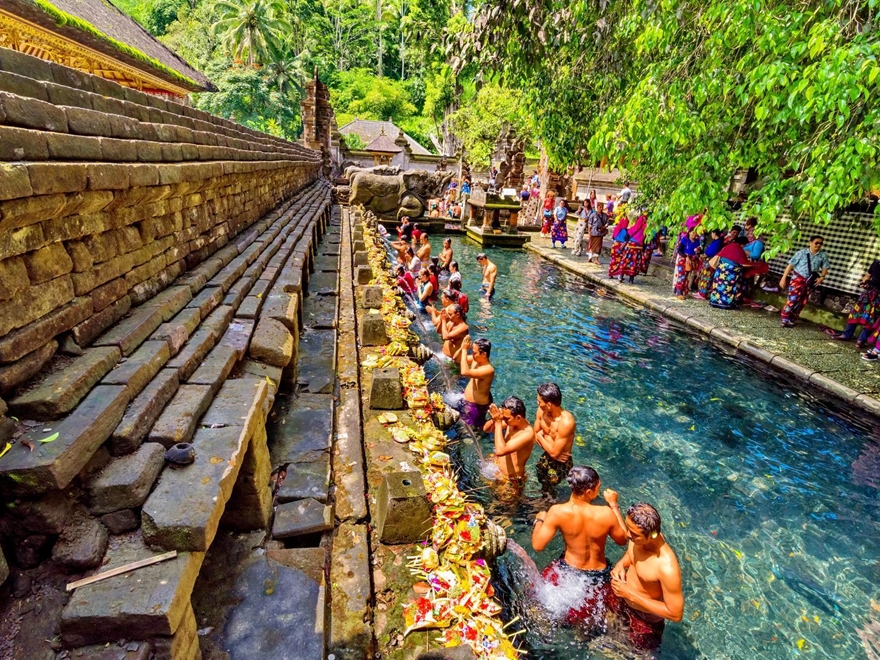 - Tham quan Đền suối thiêng Tampak Siring (Tirta Empul), địa điểm tâm linh nổi tiếng với nghi thức tắm suối thanh tẩy
