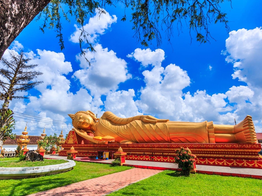 - Pha That Luang (Tháp Lớn) với tháp chính cao 45m được xây dựng các đây 450 năm tương truyền là nơi an vị xá lợi của Đức Phật Thích Ca, là biểu tượng cho đất nước Lào hiền lành, mến khách. Ngay bên cạnh là Bảo tàng văn hóa Phật giáo Lào - là những công trình tôn giáo đồ sộ và hoành tráng biểu trưng cho sự uy nghi và sự linh thiêng của Phật giáo.