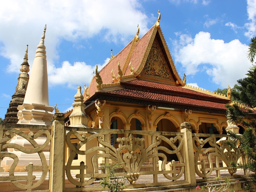 Đón quý khách tại văn phòng lữ hành Saigontourist, khởi hành đi Mỹ Tho bằng đường cao tốc Sài Gòn - Trung Lương. Tiếp tục qua cầu Rạch Miễu, xe đưa đoàn đến xứ dừa Bến Tre - tham quan cơ sở chế biến dừa dọc hai bên sông, lò kẹo dừa. Thuyền máy đưa du khách vào những kênh rạch chằng chịt hiền hòa của miền Tây sông nước, thăm làng nghề truyền thống, thưởng thức trà, trái cây theo mùa. Qúy khách ngồi trên xe lôi ngắm nhìn cảnh làng quê yên ả với vườn dừa, vườn cây ăn trái... Trải nghiệm cảm giác len lỏi qua các kênh rạch bằng đò chèo, tận hưởng không khí trong lành, mát mẻ. Buổi chiều, đoàn theo quốc lộ 60 đến Trà Vinh - thành phố của những hàng cây cổ thụ, tham quan Ao Bà Om, viếng chùa Âng - một trong những ngôi chùa cổ kính nhất trong hệ thống hơn 140 ngôi chùa Khmer tại Trà Vinh. Nghỉ đêm tại Trà Vinh.