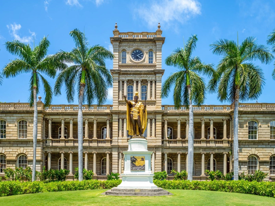 - Tham quan Cung điện Iolani – nơi ở của vị vua tài ba và hùng mạnh xứ Hawaii, được xây dựng bởi Đức vua Kalakaua và Nữ hoàng Kapiolani vào năm 1882.