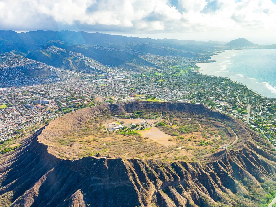 - Ngắm toàn cảnh kỳ thú của đảo Hawaii từ ngọn núi lửa Diamond Head ở phía đông Waikiki, thăm vịnh Hanauma với bãi biển hình vòng cung núp kín giữa hai sườn núi tuyệt đẹp và trông có phần bí ẩn