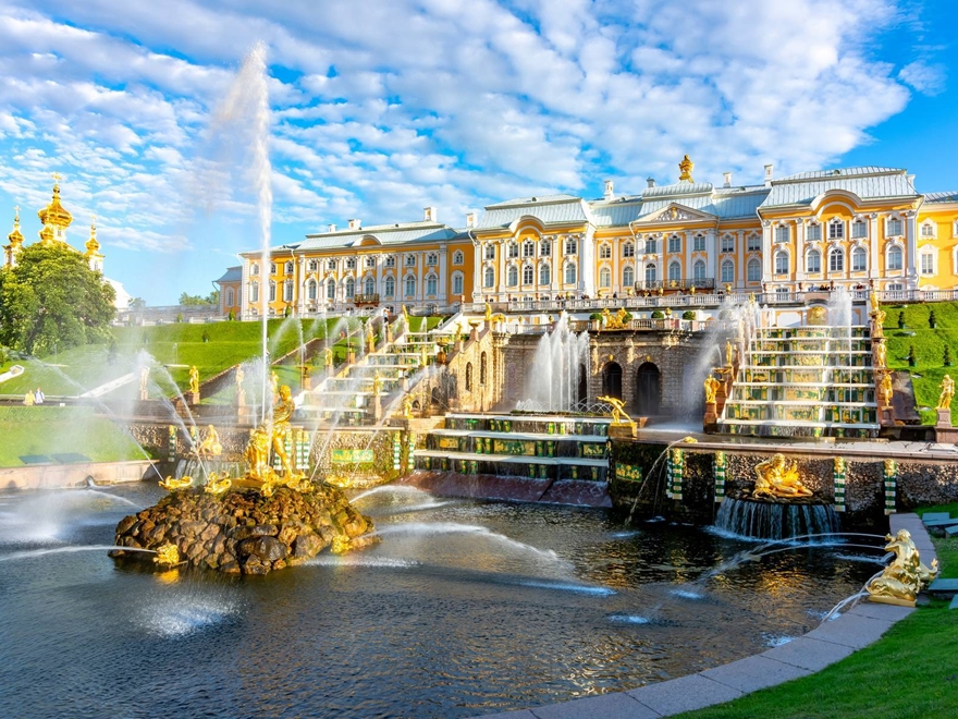 - Khởi hành đến Petrodvorets, ghé thăm Cung điện Mùa Hè Peterhof, quần thể kiến trúc tráng lệ bên vịnh Baltic.