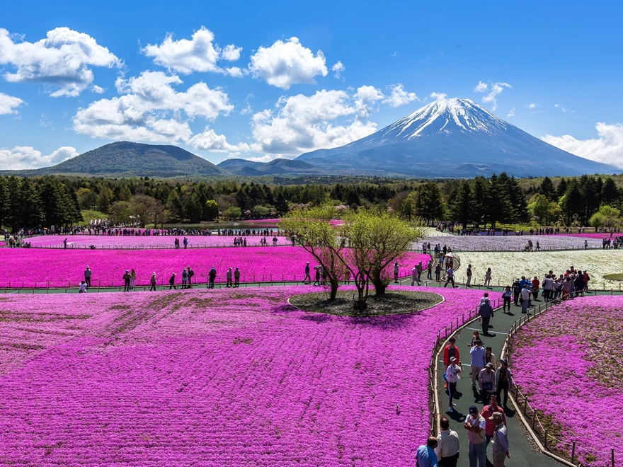 - Tham quan khu Fuji Shibazakura, thưởng ngoạn hoa chi anh với những thảm hoa rực rỡ, nổi bật sắc hồng đậm và hồng tím.