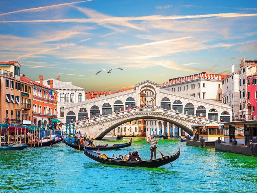 - Dừng chân tại Venice – thành phố tình yêu giữa lòng nước, du ngoạn thuyền Gondola trên những con kênh uốn lượn, chiêm ngưỡng Quảng trường San Marco, Cầu Than Thở và kiến trúc tráng lệ in bóng xuống dòng nước xanh biếc.