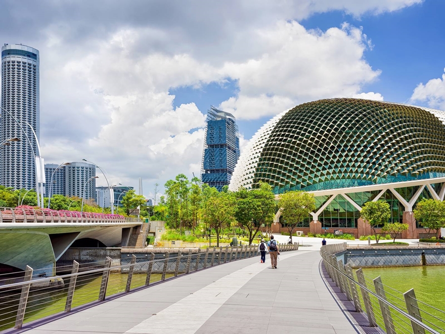 - Chụp hình lưu niệm với Nhà hát Esplanade và Tòa nhà Quốc Hội.