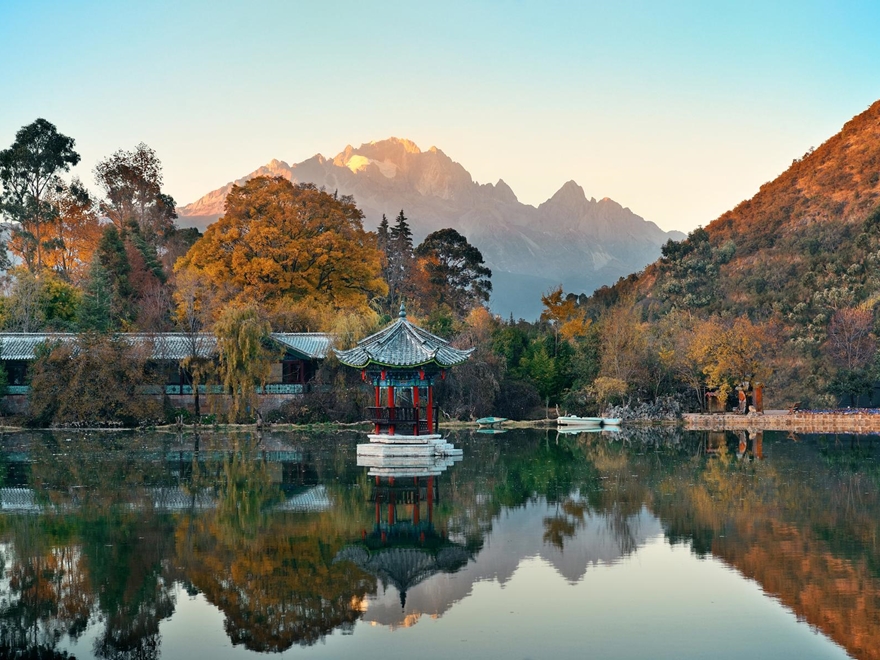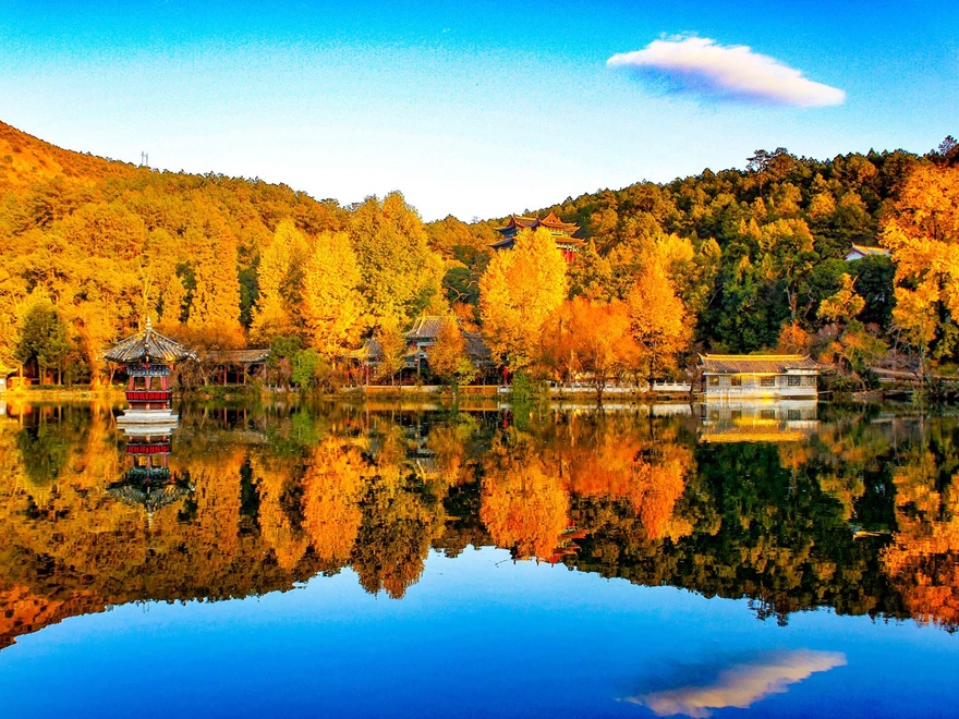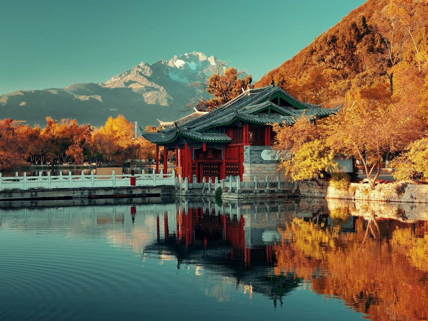 • Tiếp tục đến Công viên Hắc Long Đàm, nơi dòng nước tinh khiết từ Ngọc Long Tuyết Sơn đổ về, soi bóng đỉnh núi ngàn năm.