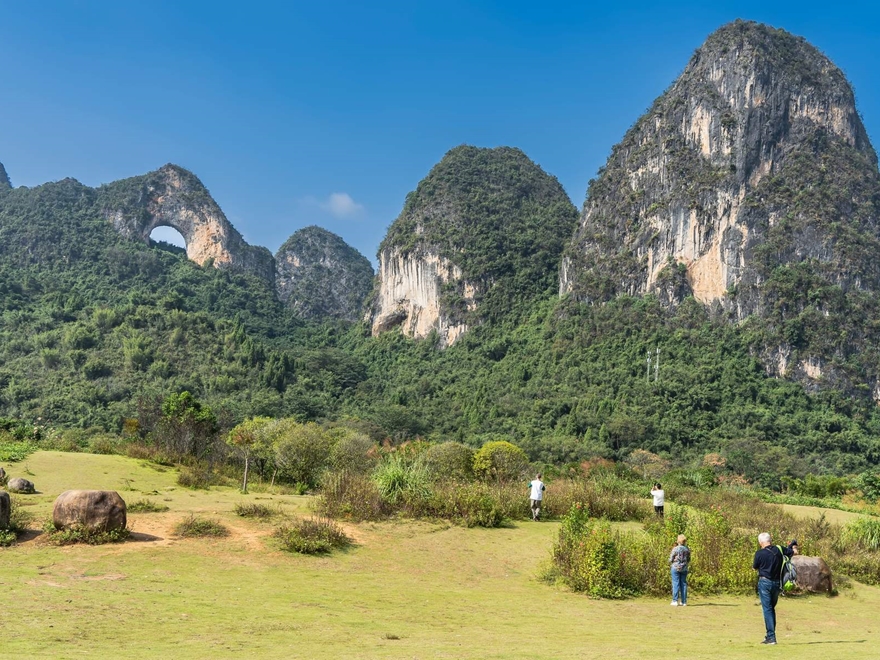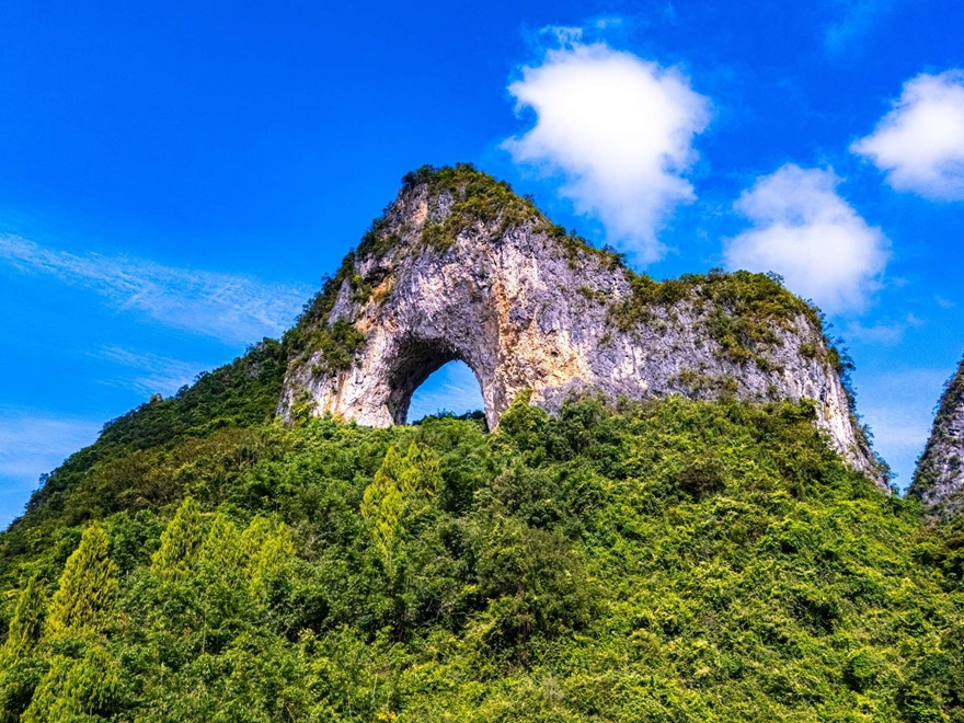 • Khám phá Núi Mặt Trăng, ngọn núi đá vôi nổi bật với vòm đá tự nhiên, thay đổi hình dạng theo từng góc nhìn.