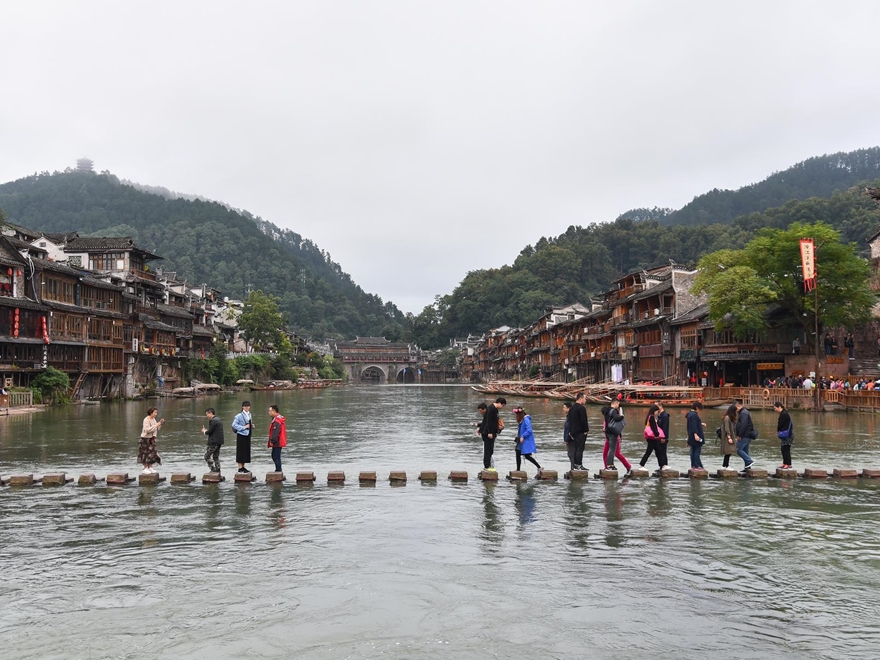 Khởi hành đến Phượng Hoàng Cổ Trấn, hình thành từ năm 686, nổi bật với nhà cổ áp sát sườn núi soi bóng dòng Đà Giang