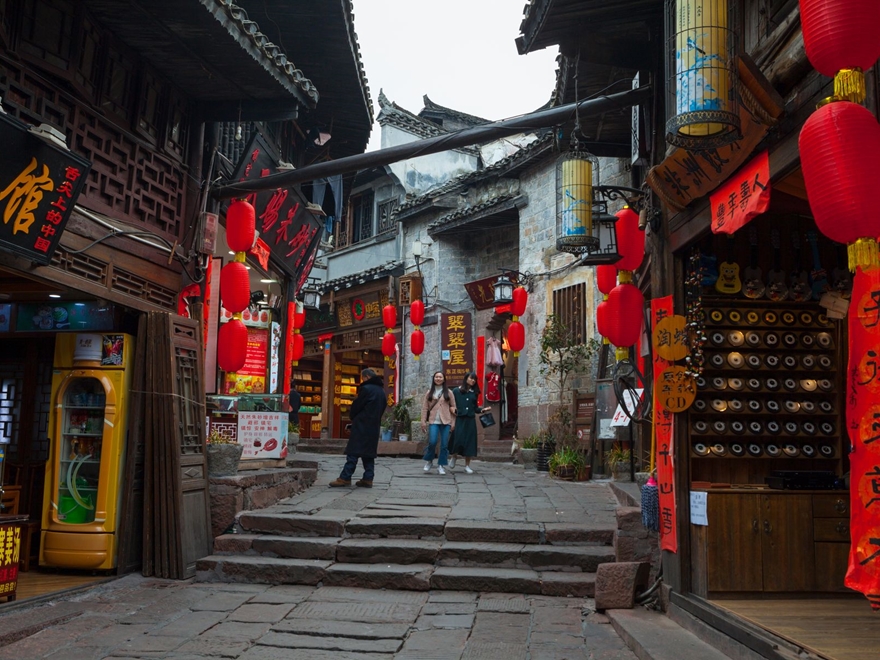 - Tham quan Phố Xiaohe, khu phố mô phỏng phong cách Minh – Thanh với đường lát đá xanh và các nhà sàn đặc trưng.