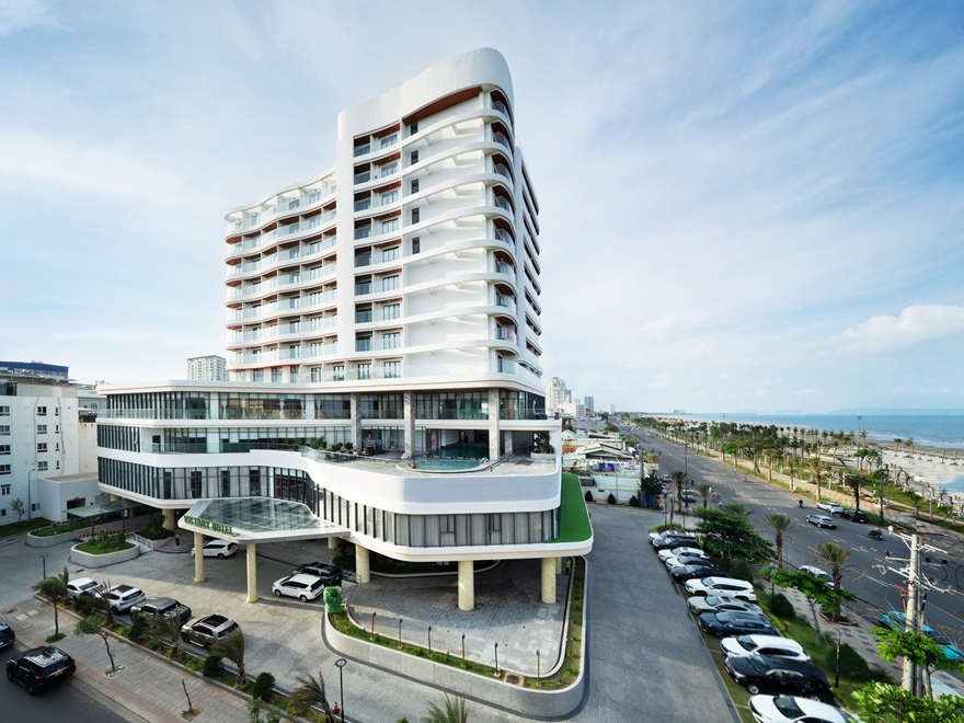 - Victory Hotel Vũng Tàu nổi bật bởi tòa nhà 12 tầng với gam màu trắng sang trọng, được xây dựng theo kiến trúc Tân cổ điển một cách tinh tế.