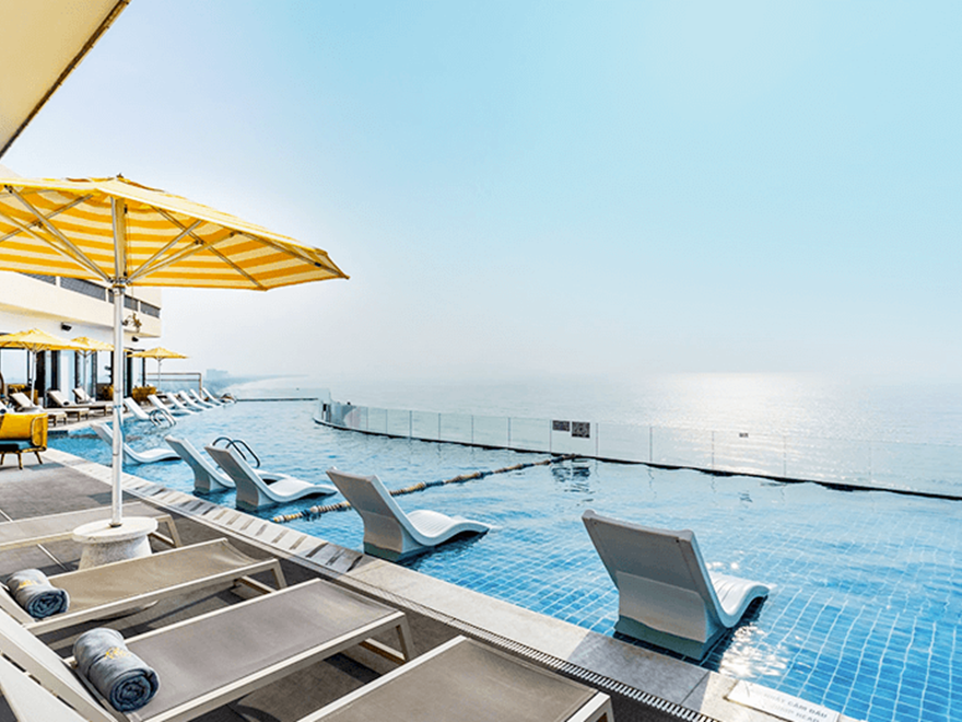 - Hồ bơi vô cực trên tầng thượng với tầm nhìn bao quát biển và thành phố.