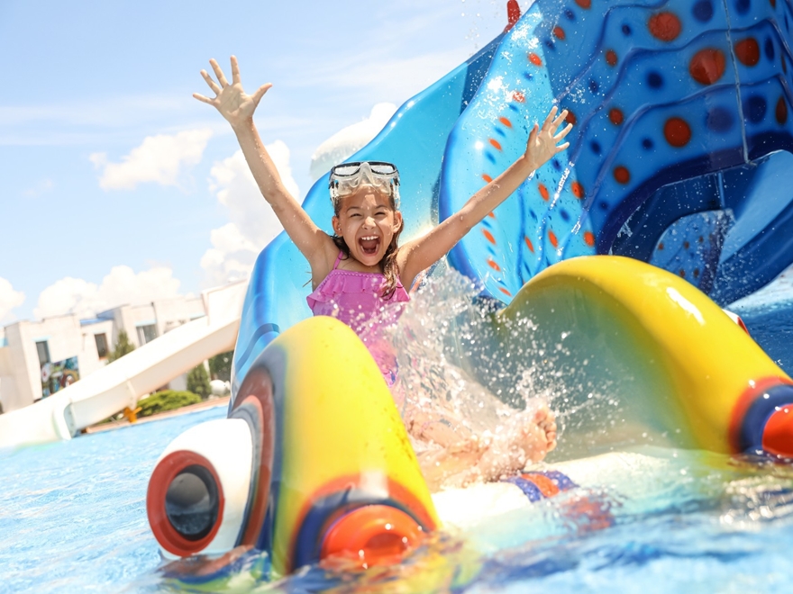 - Công viên mang đến hệ thống 14 trò chơi và khu tham quan đa dạng, cho phép du khách trải nghiệm trọn vẹn từ các đường trượt nước tốc độ cao như Dueling Racer, thư giãn trên dòng sông lười Adventure River cho đến hoạt động lặn biển ngắm sinh vật đại dương tại Rainbow Reef.
