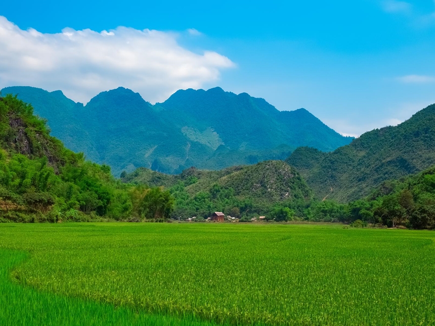 Buổi sáng, tham quan khu du lịch Mộc Châu Island, quần thể khu vui chơi kết hợp nghĩ dưỡng cao cấp của vùng Tây Bắc. Tự do trải nghiệm hệ thống cầu kính Bạch Long - cầu kính đi bộ dài nhất thế giới, thưởng ngoạn cảnh quan thiên nhiên hùng vỹ (tự túc chi phí). Tiếp tục khởi hành qua Sơn La, chinh phục đèo Pha Đin - một trong những đường đèo dài và hiểm trở thuộc “Tứ đại đỉnh đèo” miền Bắc, ranh giới 2 tỉnh Điện Biên & Sơn La. Buổi chiều, thăm tượng đài chiến thắng Điện Biên Phủ (đồi D1), ngắm toàn cảnh thành phố Điện Biên Phủ và cánh đồng Mường Thanh từ trên cao. Nghỉ đêm tại Điện Biên.