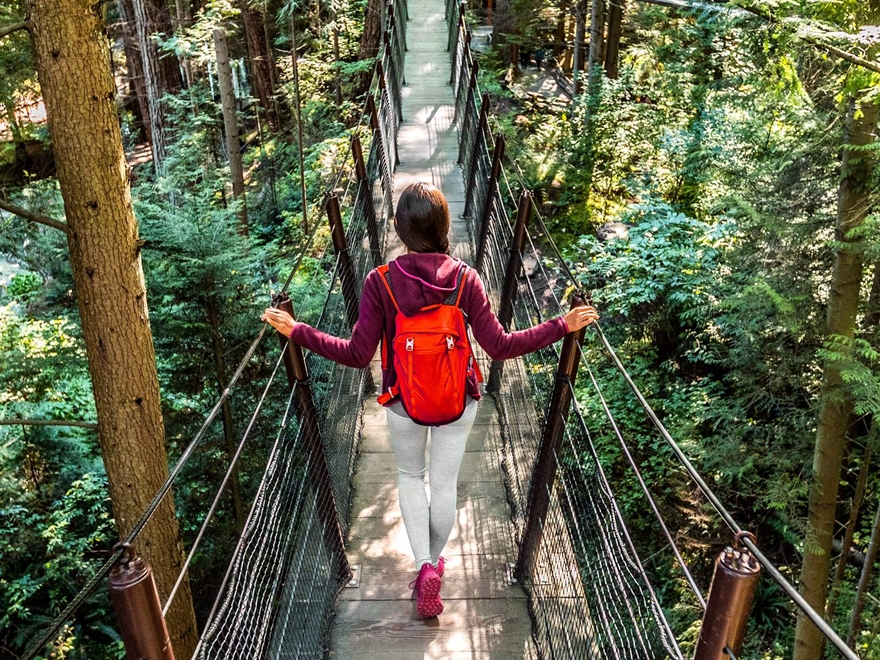- Trải nghiệm Cầu treo Capilano – cây cầu treo cổ nhất, cao nhất và dài nhất thế giới, nối liền hai bờ sông Capilano, lơ lửng giữa rừng xanh mang lại cảm giác vừa hồi hộp vừa thích thú.