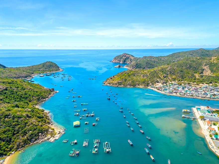 Xuống thuyền ngoạn cảnh vịnh Vĩnh Hy, chiêm ngưỡng quần thể san hô đầy màu sắc bằng tàu đáy kính.