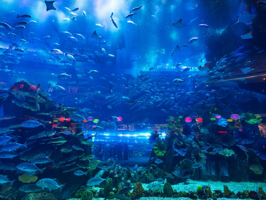 - Tham quan Dubai Aquarium, một trong những thủy cung lớn nhất thế giới, tọa lạc trong Dubai Mall.