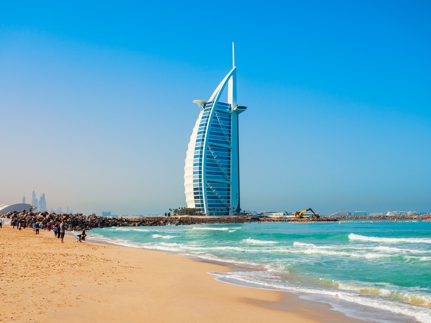 - Dừng chân chụp hình tại khách sạn 7 sao Burj Al Arab, biểu tượng xa hoa của Dubai.