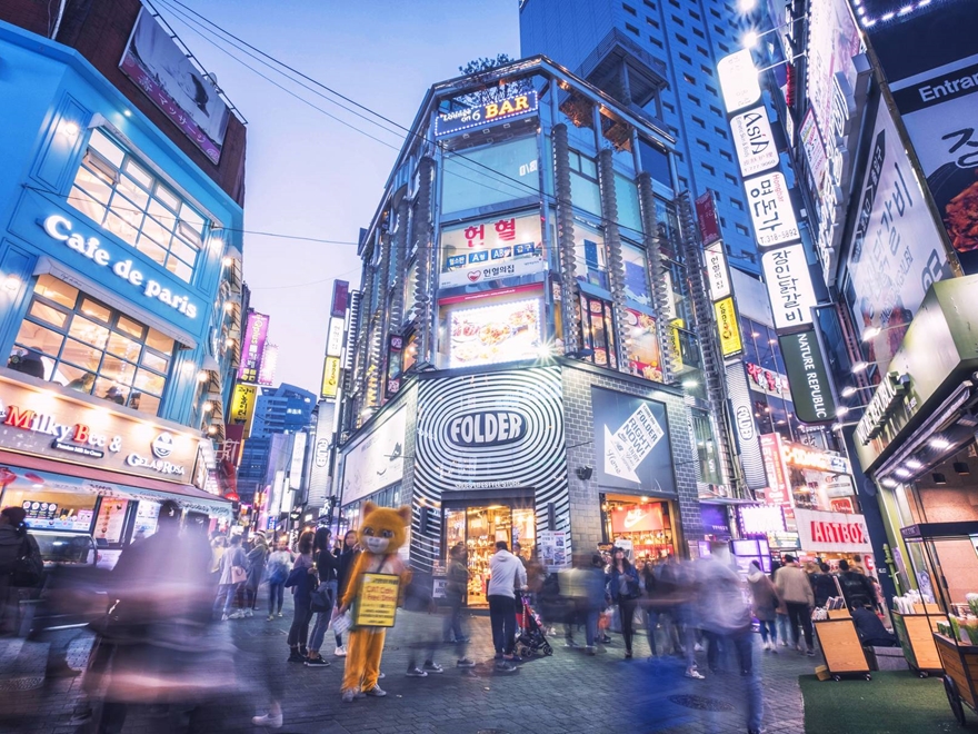 - Dạo đêm tại Myeong-dong, khu mua sắm sầm uất với mỹ phẩm – thời trang – đồ lưu niệm.