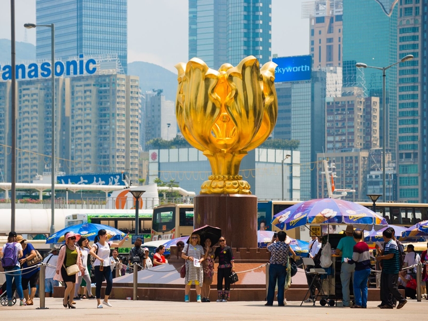 - Chụp hình lưu niệm tại Quảng trường Kim Tử Kinh (Golden Bauhinia Square), Trung tâm hội nghị quốc tế (HKCEC) khu vực đặt biểu tượng Hoa Tử Kinh - nơi diễn ra lễ trao trả Hong Kong cho Trung Quốc vào năm 1997.