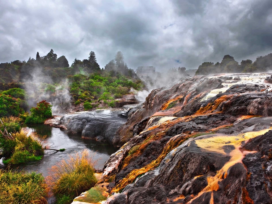 - Khám phá vẻ đẹp khoáng đạt của thiên nhiên khi đến Rotorua, nổi tiếng với thung lũng địa nhiệt thoang thoảng mùi lưu huỳnh của bùn khoáng rất tốt cho sức khỏe.