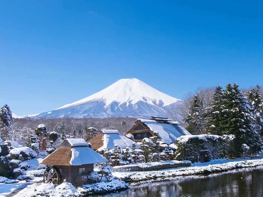 Đến tham quan làng cổ Oshino Hakkai nằm dưới chân núi Phú Sĩ – những ngôi nhà nơi đây vẫn còn mang nét kiến trúc truyền thống Nhật Bản xa xưa như : nhà phủ rêu phong, khu vườn rau, vườn bonsai, cây cầu gỗ bắc qua các hồ nước đặc biệt – được cấu tạo phần đáy chủ yếu là nham thạch và được nuôi dưỡng nhờ nguồn nước băng tuyết tan chảy từ đỉnh núi Phú Sĩ.