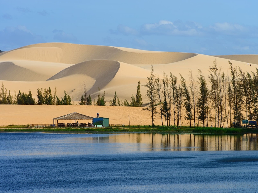 - Trải nghiệm cảm giác chinh phục đồi cát bằng xe Jeep vượt địa hình tại Bàu Trắng.