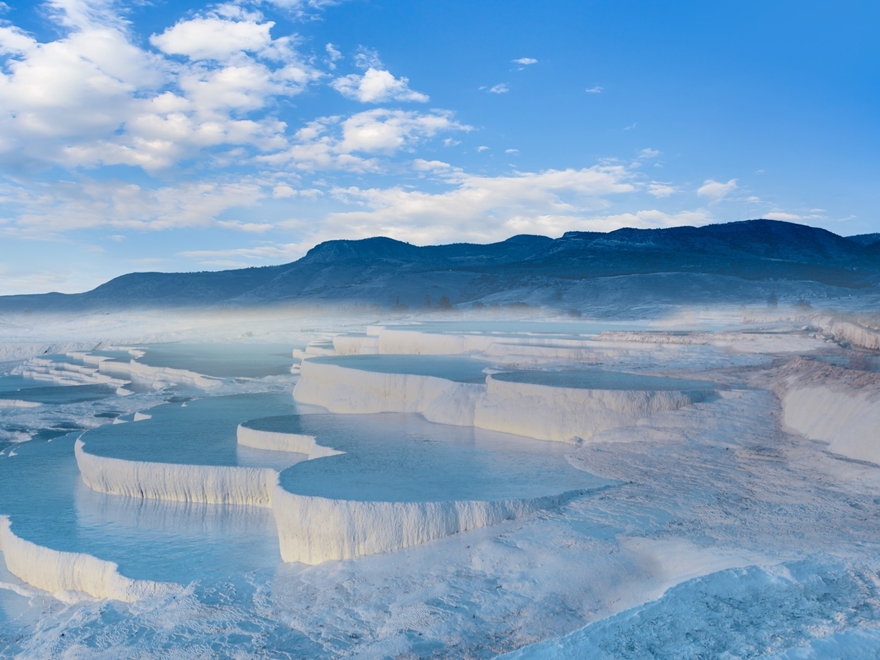 - Khám phá “Lâu Đài Bông”, suối khoáng nóng tạo bậc thềm đá vôi trắng độc đáo