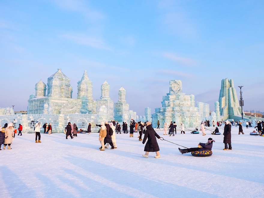 - Buổi tối, tham quan Công viên Đại Thế Giới Băng Tuyết, chiêm ngưỡng hơn 100 công trình điêu khắc băng khổng lồ được thắp sáng bằng laser và đèn LED – một lễ hội ánh sáng kỳ ảo chỉ có ở Cáp Nhĩ Tân.