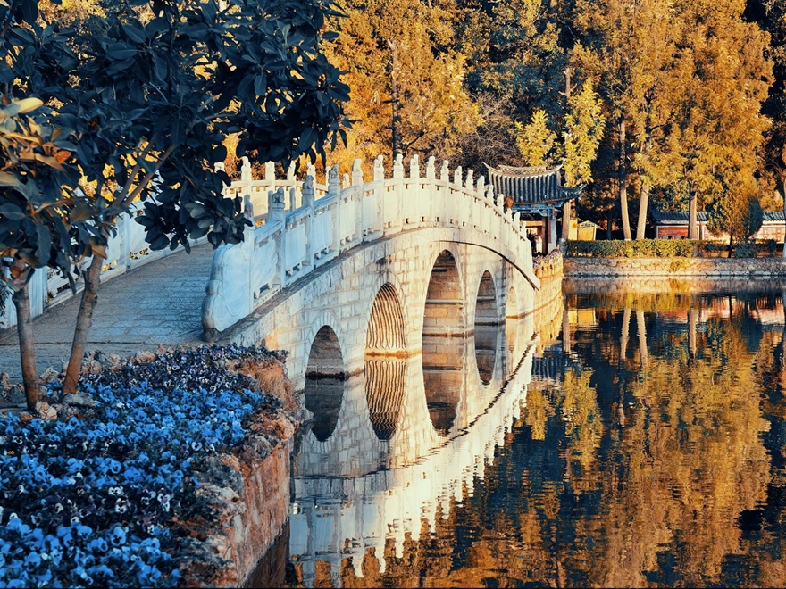 • Tiếp tục đến Công viên Hắc Long Đàm, nơi dòng nước tinh khiết từ Ngọc Long Tuyết Sơn đổ về, soi bóng đỉnh núi ngàn năm.