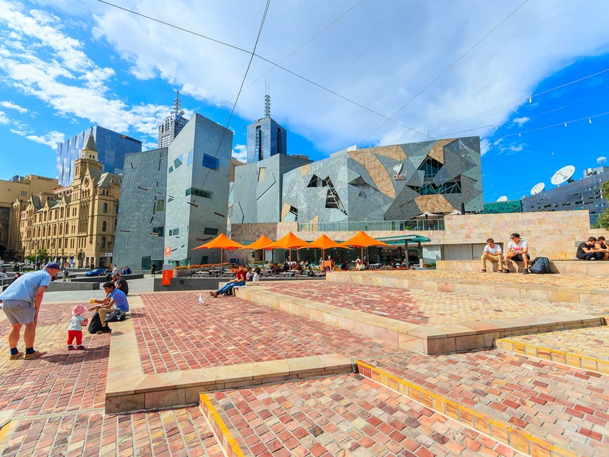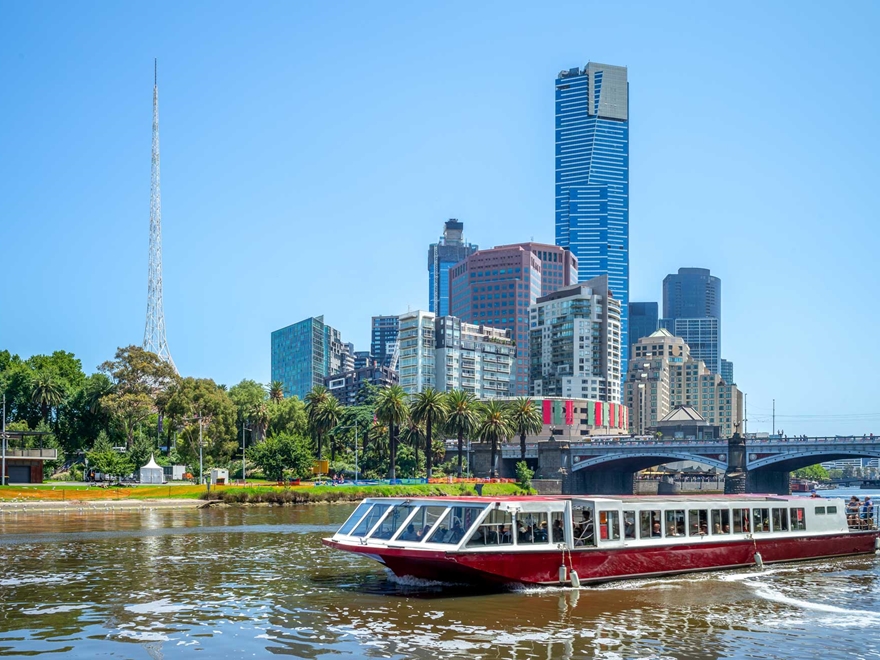 - Xe đưa đoàn chiêm ngưỡng Quảng trường Federation – trung tâm sinh hoạt văn hóa sôi động, sông Yarra hiền hòa uốn lượn giữa lòng thành phố, chụp hình lưu niệm tại Victoria Market và Tòa nhà Nghị viện (bên ngoài).